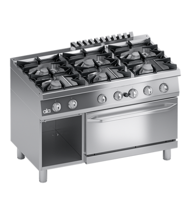 GAS RANGE 6 BURNERS ON GAS OVEN 1/1 GN and OPEN CABINET- SOLUTION LINE