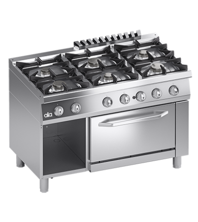 GAS RANGE 6 BURNERS + ELECTRIC VENTILATED OVEN 1/1 GN – SOLUTION LINE