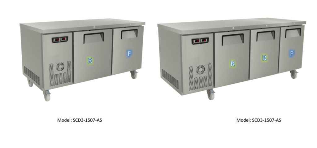 แช่แข็ง (-18°C ถึง -20°C) ระบบทำความเย็นแบบ No Frost (ไม่มีน้ำแข็งเกาะ) วัสดุเป็นสแตนเลสเกรด 304 ทนทานต่อการกัดกร่อนและไม่เป็นสนิม